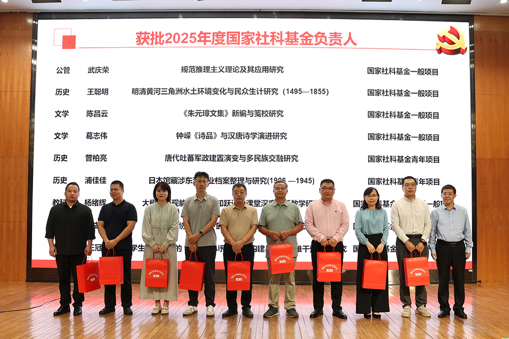 会议表彰了获批本年度国家社科基金、教育部人文社科项目、省社科基金、省艺术基金,以及全国高校古委会项目的41位项目负责人,赵祥祥代表学校向立项老师表示热烈祝贺并颁发纪念品。